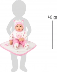 Součástí balení je oblečení pro panenku, dudlík a dečka sladěná do jemných barev. Oblečky se jednoduše oblékají i svlékají, takže děti trénují jemnou motoriku při každodenní péči o svou panenku.