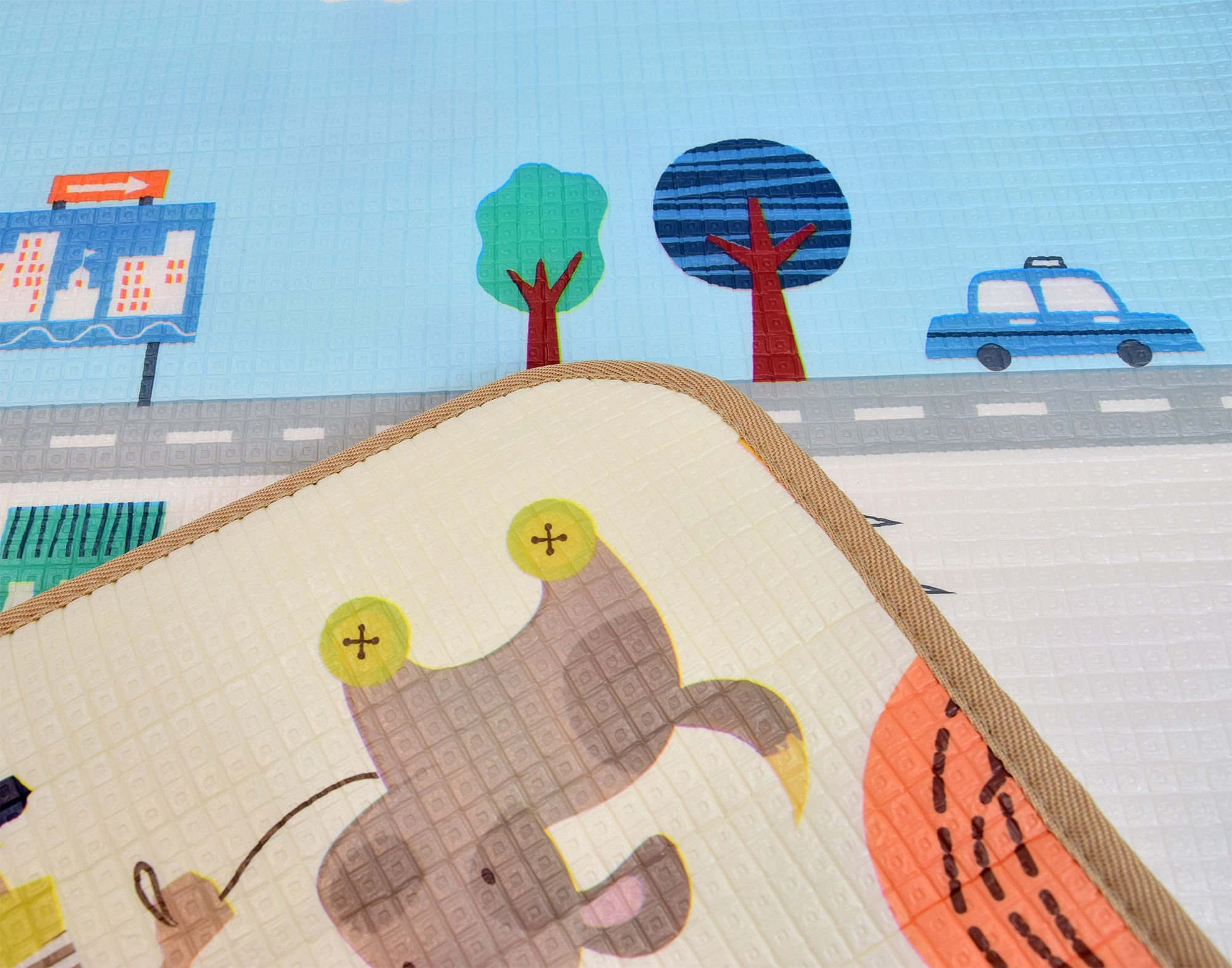 - Oboustranný design 2v1 – hravé město a roztomilá zvířátka