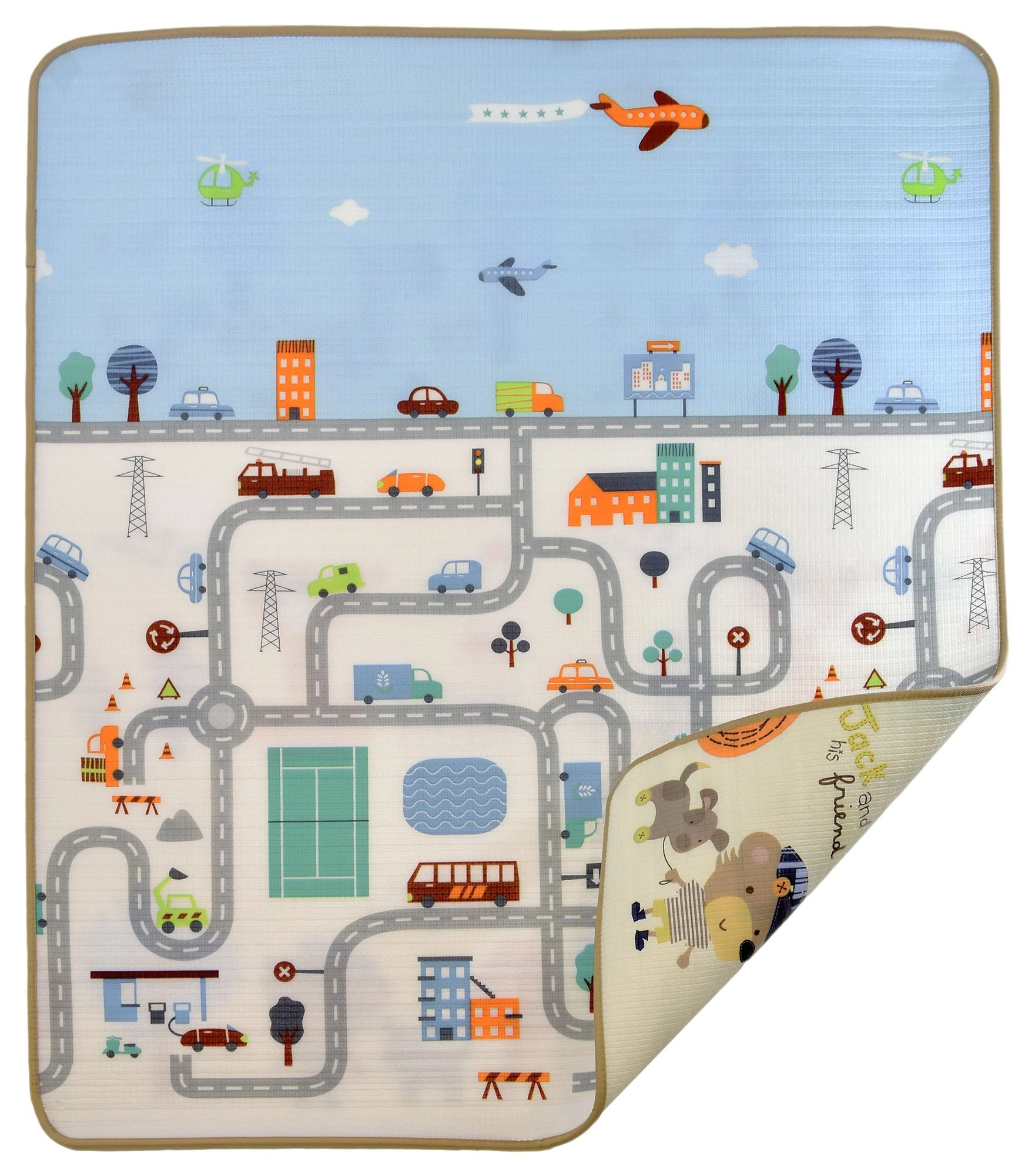 Objevte univerzální hrací plochu, která roste s vaším dítětem od prvních dnů života. Jedna strana podložky zobrazuje město s cestami pro autíčka, druhá strana nabízí jemné motivy zvířátek v béžových tónech – ideální do dětského pokojíčku i obýváku. Kvalitní pěna EPE zajišťuje měkké dopady, tepelnou izolaci od studené podlahy a dlouhou životnost.