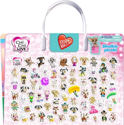 - Přibližně 70 vypouklých, barevných samolepek se štěňátky a motivy CHI CHI LOVE.