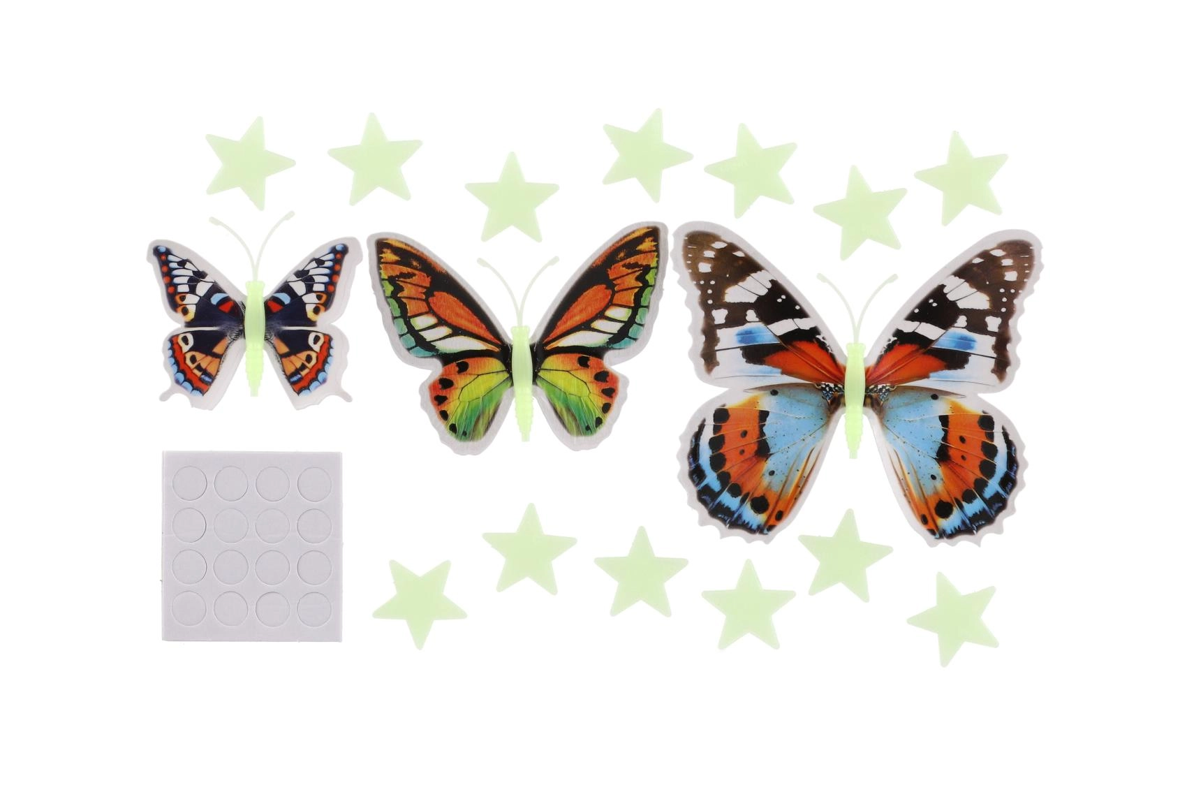 - 3 × 3D motýl, více kusů hvězdiček