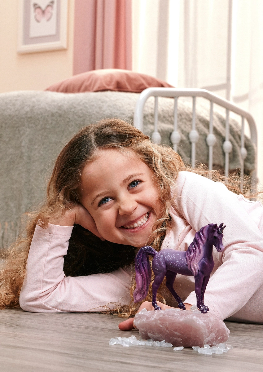Klisna duhového jednorožce Galaxie z kouzelného světa Schleich BAYALA zaujme svým jemným vzhledem, třpytivými efekty a detailním zpracováním hřívy a ocasu. Děti si zamilují její něžný pohled a ladné držení těla, které inspiruje k nekonečným příběhům z říše fantazie.