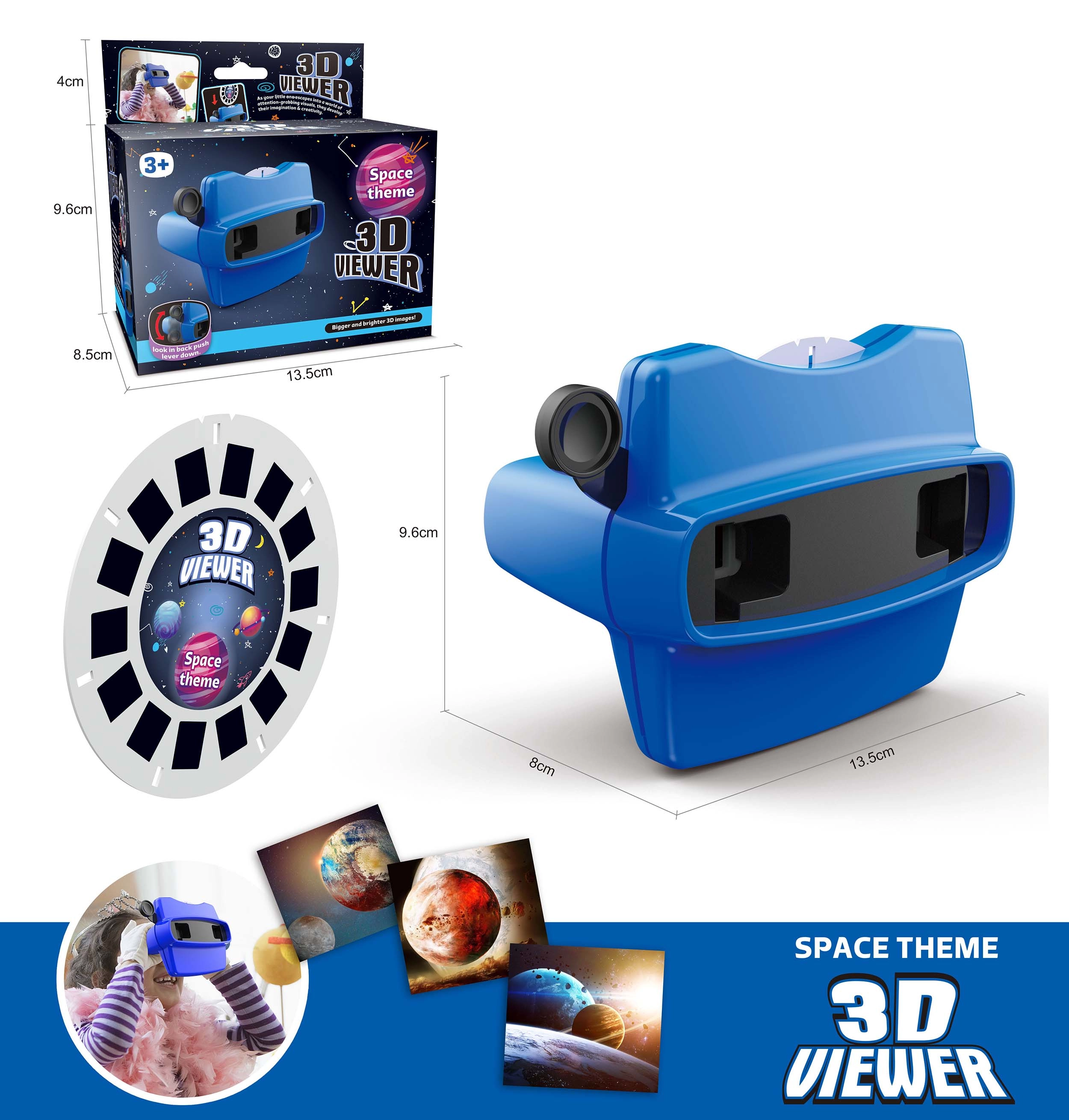 Vstupte do světa planet, hvězd a galaxií s dětskými 3D brýlemi Vesmír. Tyto brýle jsou skvělou volbou pro domácí zábavu, školní projekty i interaktivní výuku. Díky kompaktním rozměrům 13,5 × 8 × 9,6 cm se snadno přizpůsobí dětské hlavě a pohodlně se nosí.