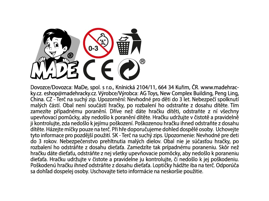 Terč je vyroben z kvalitního plastu, který odolává nárazům a snadno se udržuje. Jednoduché uchycení a lehká konstrukce umožňují rychlou přípravu hry kdekoliv.