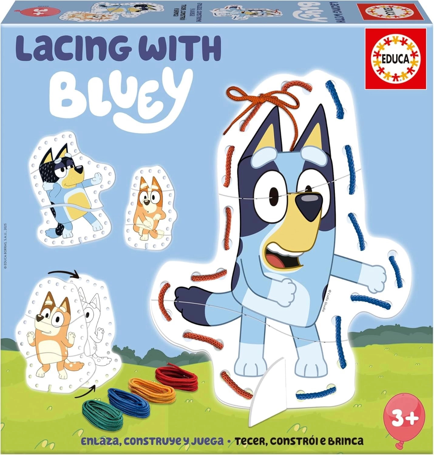 Šněrovací hra EDUCA s motivem oblíbeného seriálu BLUEY je ideální aktivitou pro malé šikulky. Děti si z 4 pevných kartonových figurek a barevných provázků postupně sestaví své postavičky a přitom trénují jemnou motoriku, koordinaci oko–ruka i soustředění. Velké dílky padnou do malých ruček a usnadňují manipulaci.
