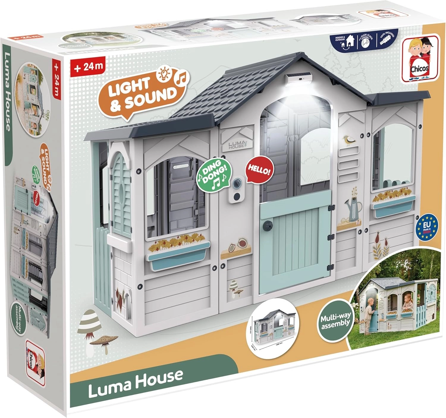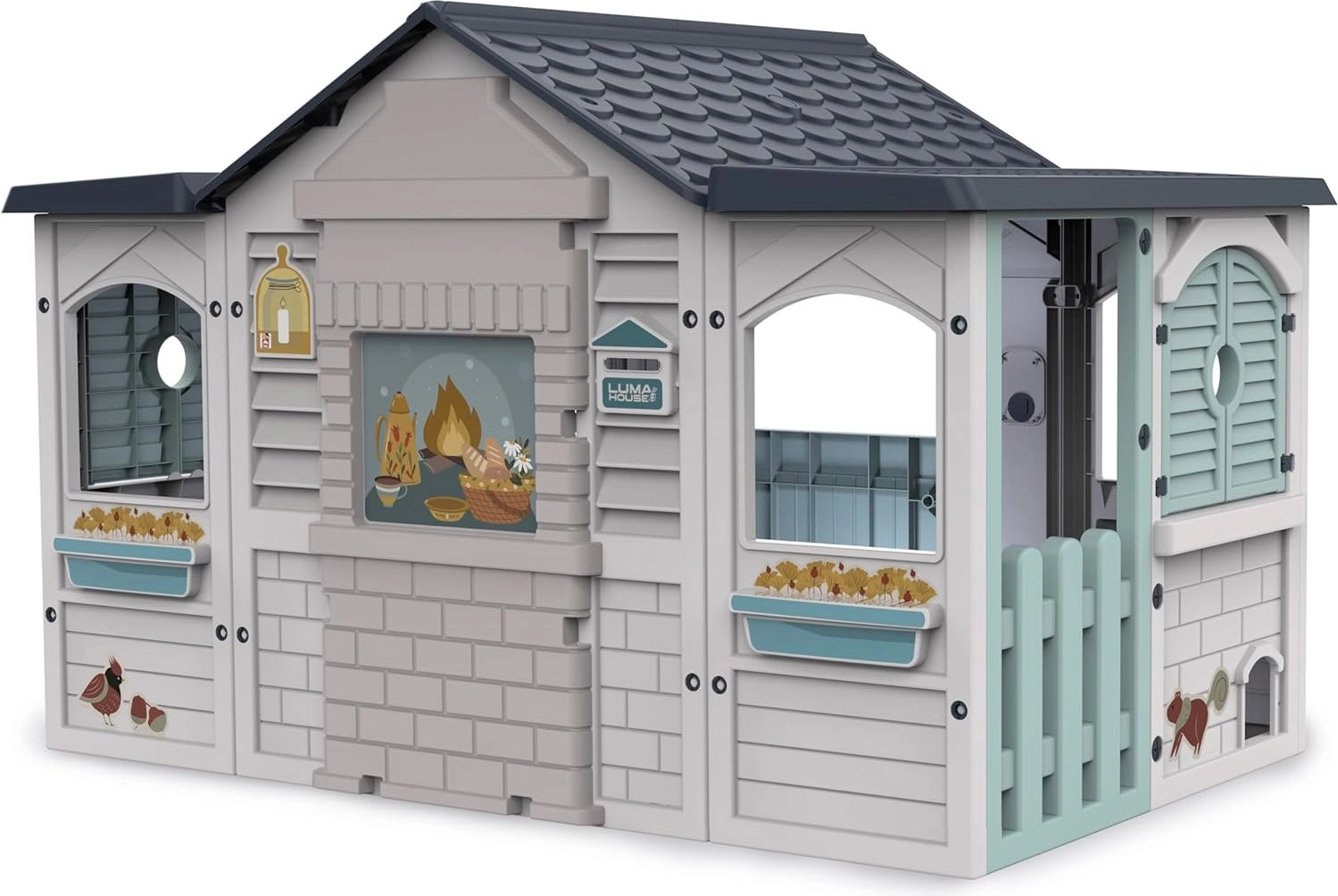 Stylový dětský domeček Luma promění každou zahradu i dětský pokoj v kouzelné místo ke hře. Nabízí světelné a zvukové efekty, otevíratelné okenice, nízká vrátka a průchod pro mazlíčky i poštovní schránku. Je vyroben z kvalitního, pevného plastu bez ostrých hran a zaujme také snadnou montáží a stabilní konstrukcí.