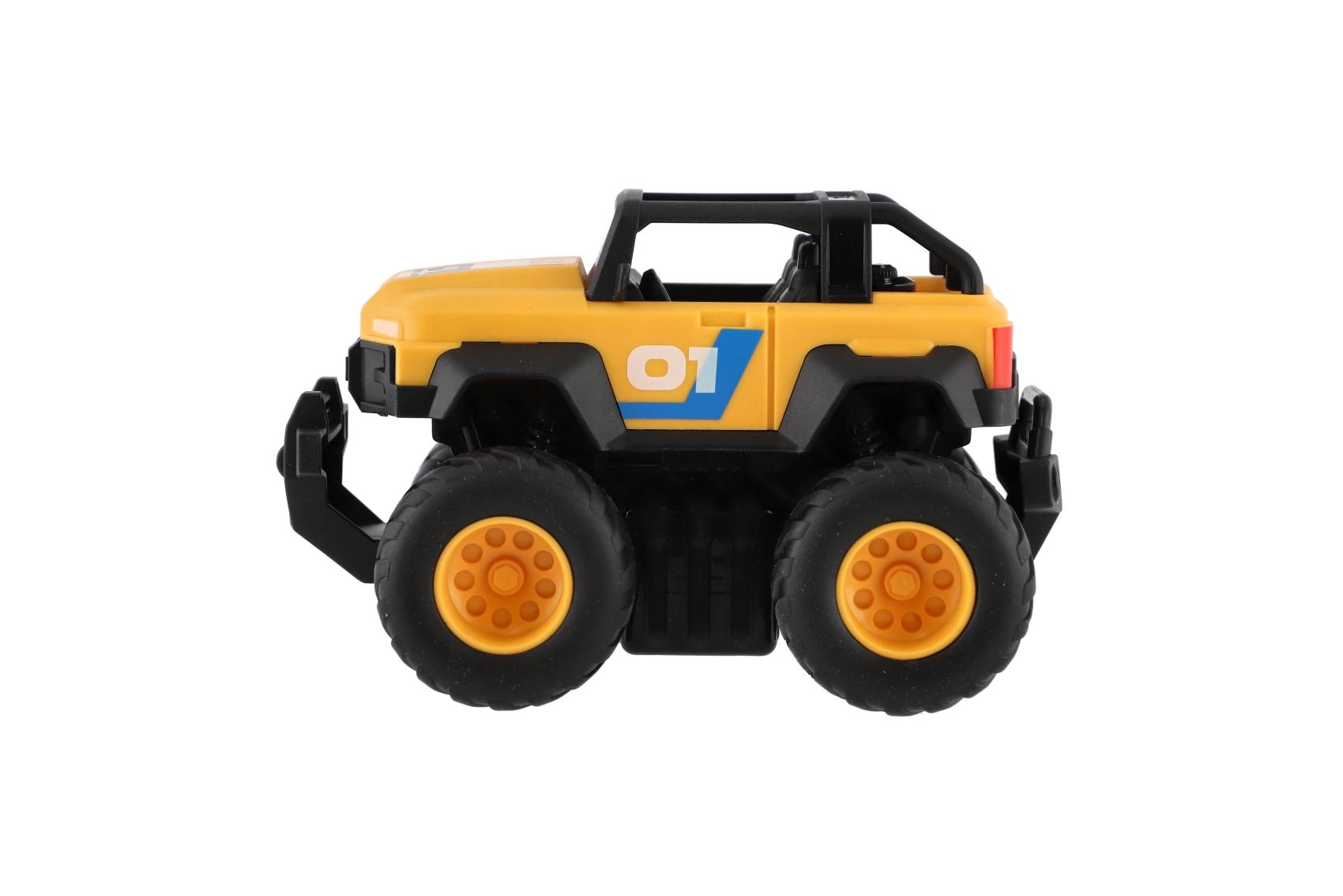 Natáhni, pusť a sleduj, jak monster trucky uhánějí vpřed. Ideální pro závody na zemi, koberci i překážkové dráhy v pokoji.