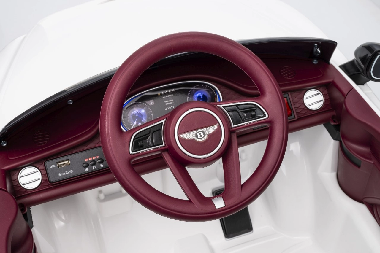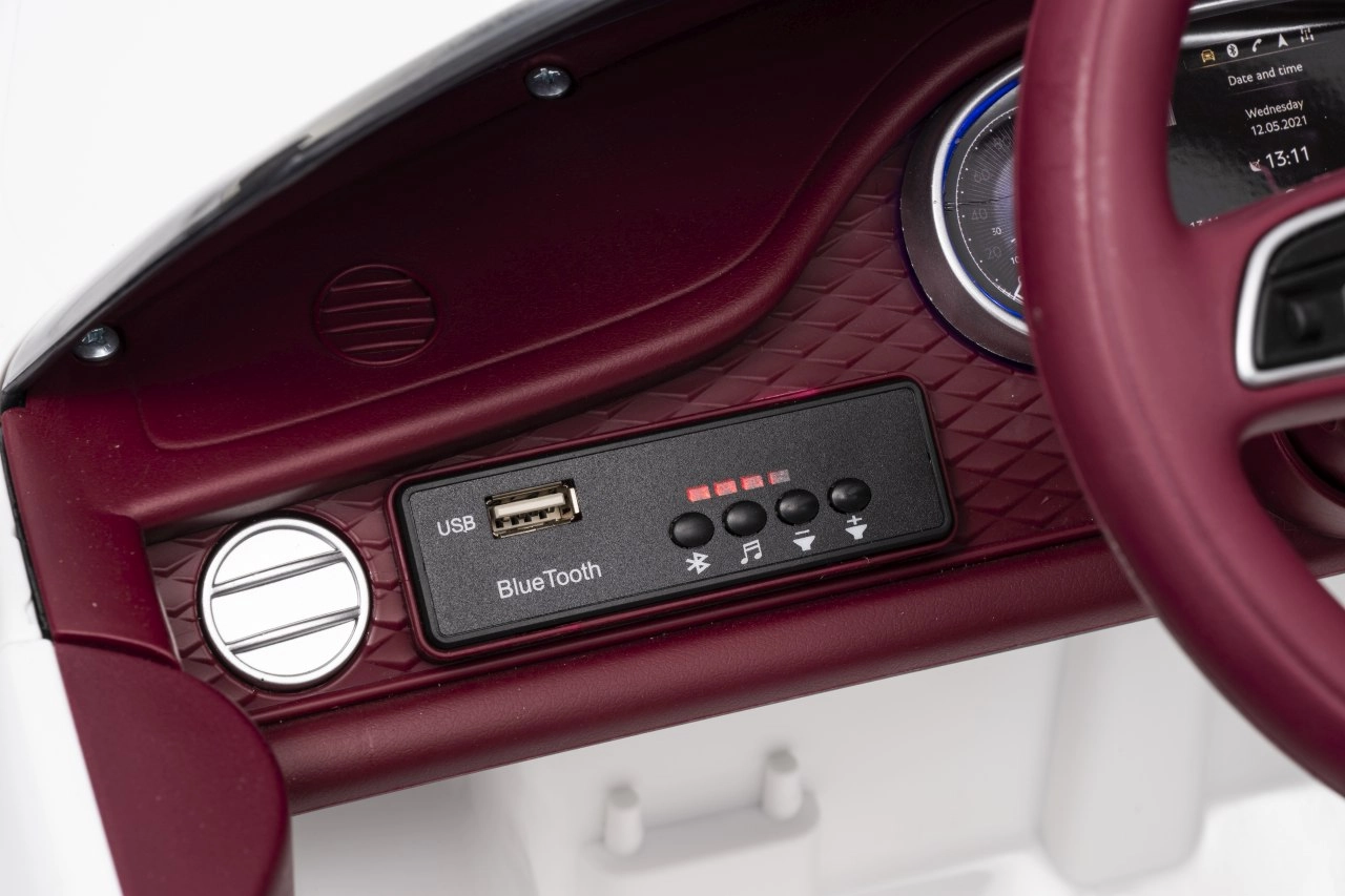 Dopřejte dětem luxusní jízdu s elektrickým autíčkem BENTLEY Bentayga S v bílé barvě. Výkonné 2×35 W motory, baterie 12 V 7 Ah, dálkové ovládání 2,4 GHz s nouzovým tlačítkem Stop, měkká EVA kola a přední i zadní LED světla zajistí bezpečnou a realistickou zábavu. Komfort doplňuje sedadlo z ekokůže s bezpečnostními pásy, plynulý rozjezd, otevírací dveře a multimediální panel s USB/MP3/SD a Bluetooth.