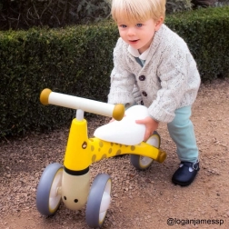 Roztomilé odrážedlo DIDICAR ve vzhledu žirafy pomáhá dětem od 12 měsíců rozvíjet rovnováhu, koordinaci a hrubou motoriku. Díky stabilní čtyřkolové konstrukci, měkkým rukojetím a hladkým kolečkům je jízda pohodlná a bezpečná doma i venku. Nízké sedlo (24 cm) usnadňuje nasedání a zvyšuje jistotu malých jezdců.