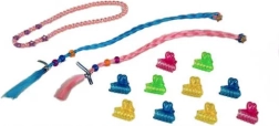 Součástí balení je celá řada barevných vlasových doplňků, které dodávají účesům osobitý styl.