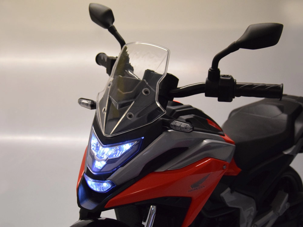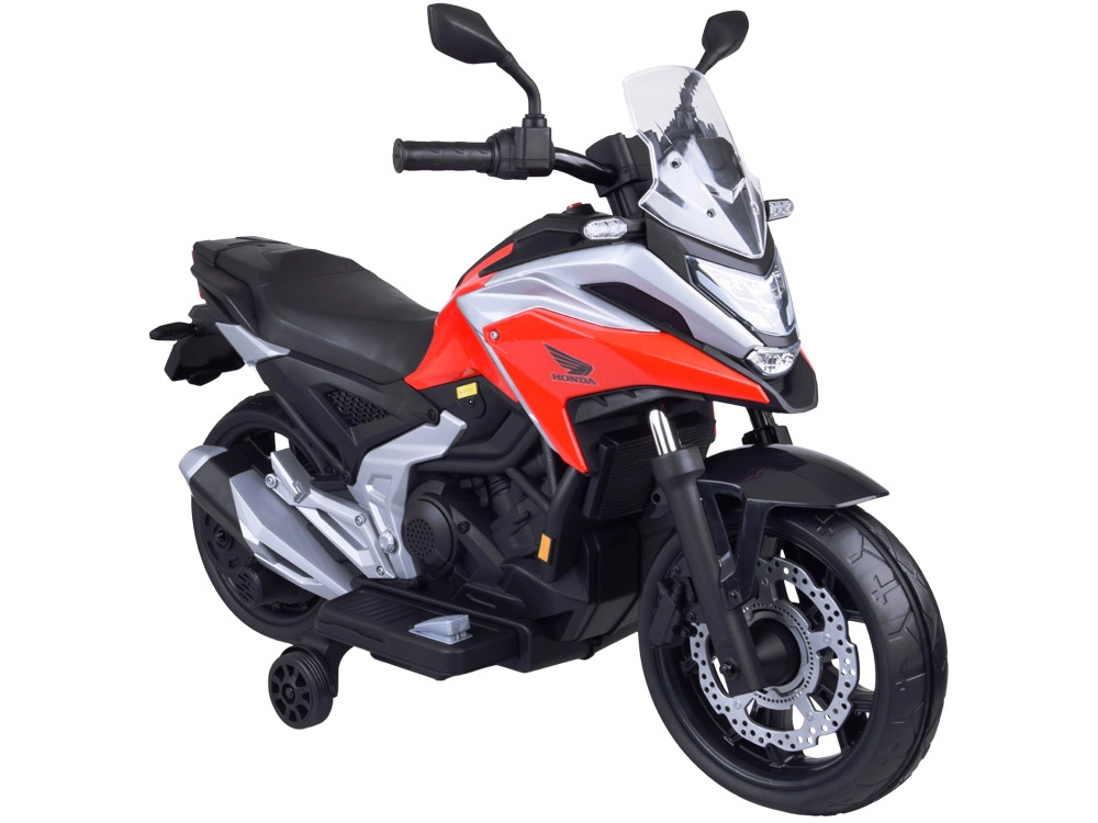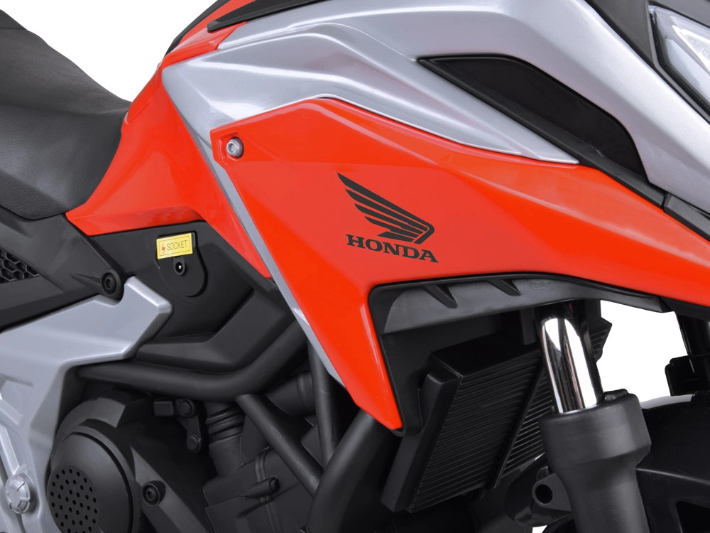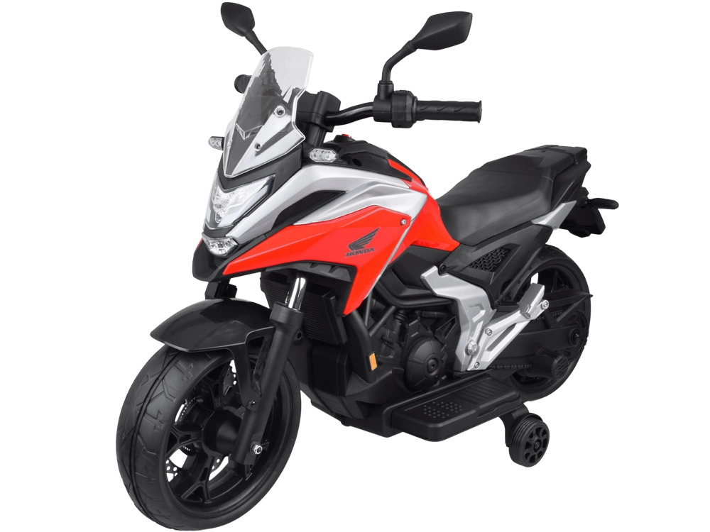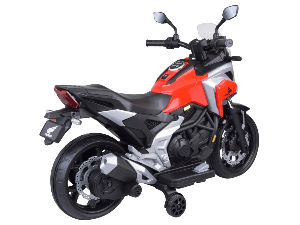 Objevte radost z jízdy s licencovanou motorkou HONDA NC750X, která zaujme věrným designem a promyšlenou výbavou. Díky dvojici 12V motorů (35 W) a akumulátoru 12 V 4,5 Ah si poradí s jízdou po chodníku, na hřišti i doma. Stabilizační kolečka dodají jistotu začínajícím jezdcům a pomohou bezpečně trénovat rovnováhu.