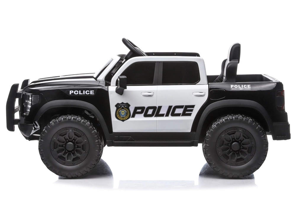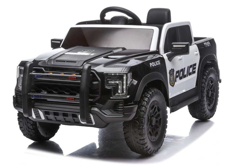 Toto černo‑bílé policejní vozidlo pro děti přináší autentický zážitek z jízdy díky robustním off-road pneumatikám, ochraně nárazníku a detailní karoserii s výraznými nápisy POLICE. Pohon 12V zajišťuje plynulou jízdu, realistické LED světla a otevírací dveře umocňují pocit skutečného služebního vozu.