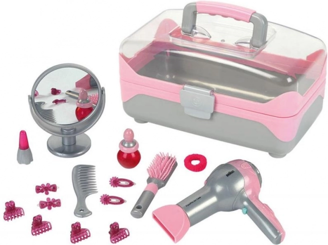 Zestava je licencována značkou Braun a je zabalena ve stylovém kufříku s průhledným víkem pro snadné skladování a pořádek. Kufřík je vyroben z kvalitního plastu, má ergonomickou rukojeť a sponu, která zajišťuje jeho uzavření. Všechny přístroje odpovídají skutečným produktům Braun FuturPro Ion-Care a fén je vybaven nástavcem pro narovnávání vlasů. Je to perfektní sada pro náročnou, profesionální malou kadeřnici.