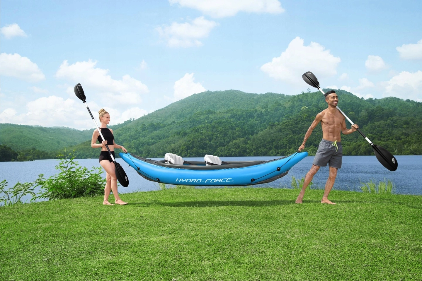 Nafukovací kajak Hydro‑Force Cove Champion X2 je ideální pro rekreační pádlování na jezerech a klidných řekách. V balení najdete vše, co potřebujete: 2 dvojlistá pádla, ruční pumpu Air Hammer, 2 nastavitelná nafukovací sedadla s opěrkou a transportní tašku. Robustní vícesložková konstrukce s pevnou nafukovací podlahou zajišťuje stabilitu a jistotu na vodě.