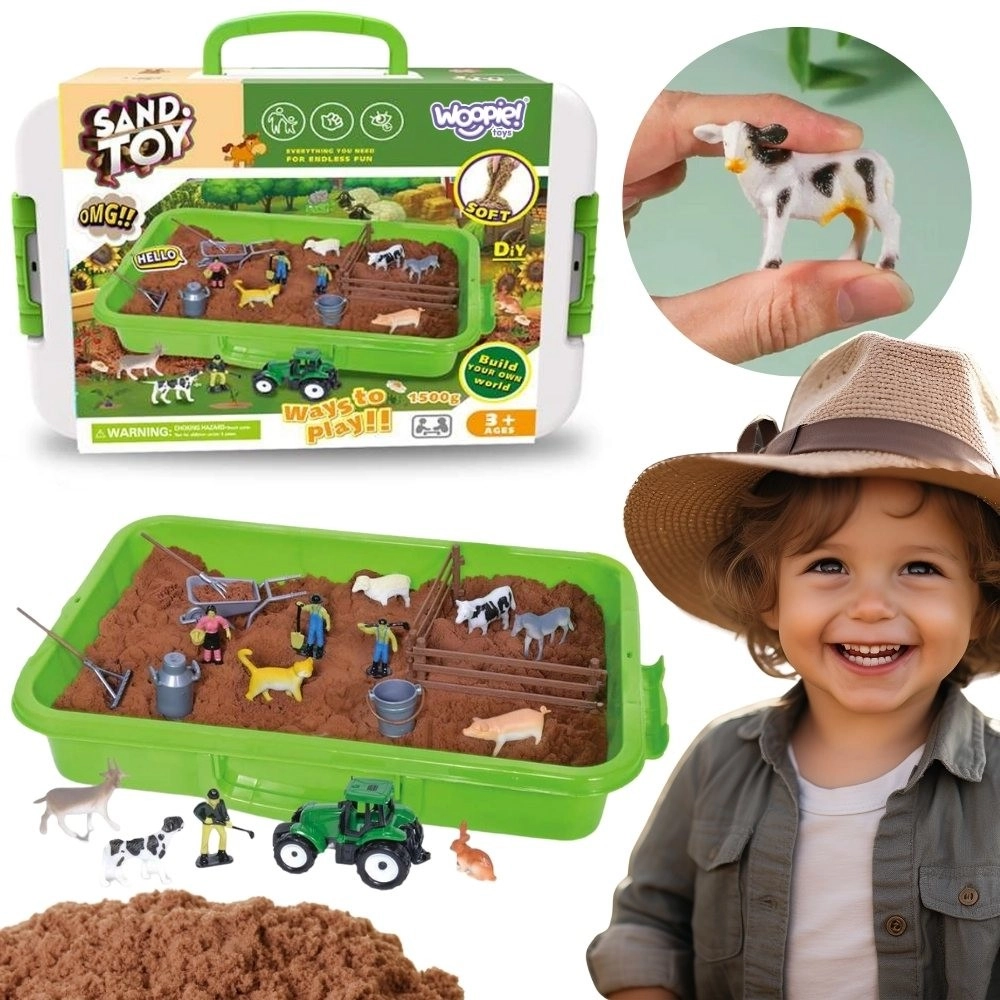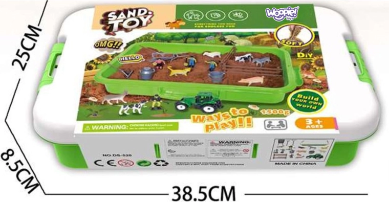 Vytvořte vlastní hospodářství a rozvíjejte představivost dětí s bohatě vybaveným setem Woopie. Kinetický písek je příjemný na dotek, nelepí se, snadno drží tvar a nevysychá, takže je ideální pro dlouhé hodiny hraní. Praktický zelený kufřík s rukojetí slouží jako přenosná pískoviště i úložný box – po hraní vše jednoduše uklidíte.