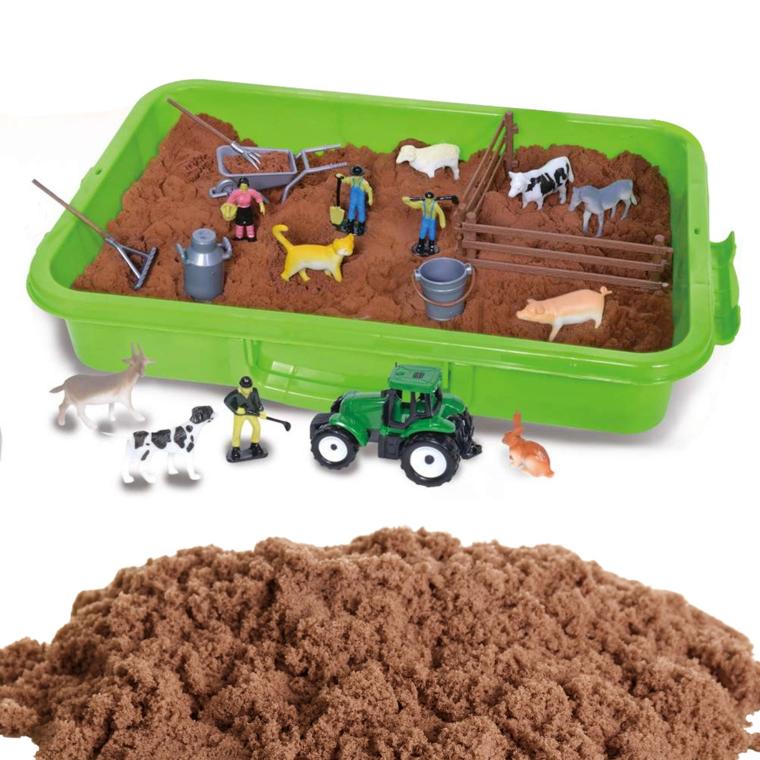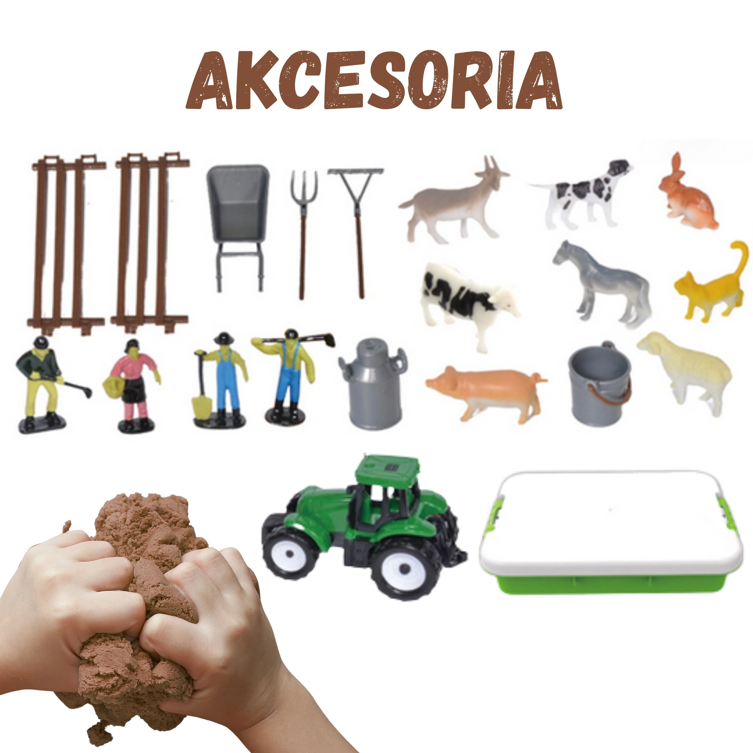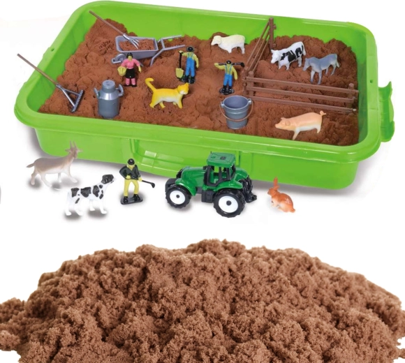 Objevte zábavný svět farmy s kreativním setem kinetického písku. V praktickém kufříku najdete až 1500 g měkkého, tvarovatelného písku v hnědé barvě, zelený traktor, figurky farmářů a hospodářská zvířata. Kufřík zároveň slouží jako herní vana, která udržuje pořádek a umožňuje čistou, smyslovou a kreativní hru doma i na cestách.