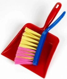 Praktická sada pro malé pomocníky do domácnosti: plastový smetáček a lopatka v barevném provedení. Ideální pro první úklidové dovednosti a hraní na domácnost. Lehká plastová konstrukce, snadné používání a vhodné pro děti od 3 let.