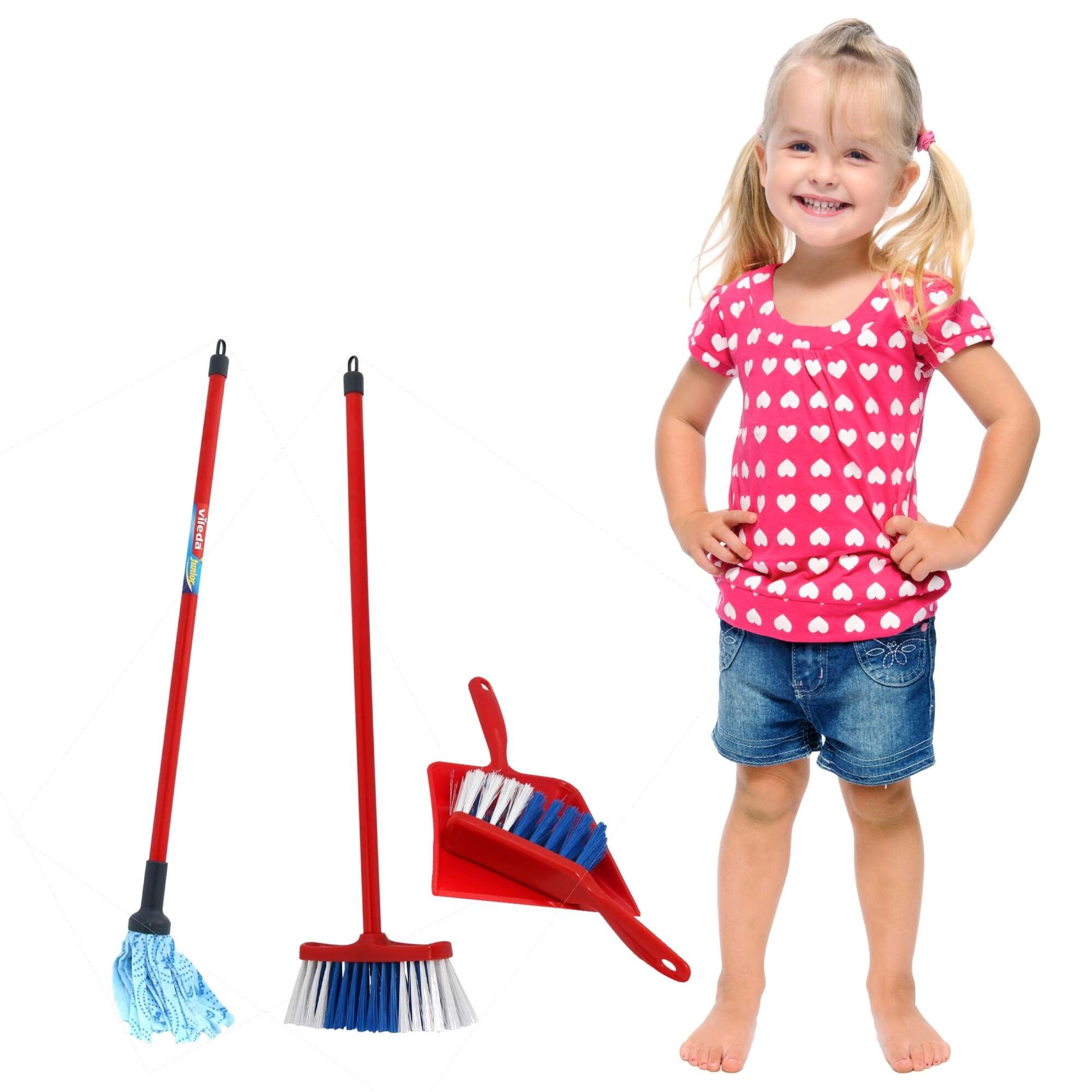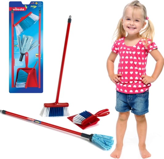 Tato dětská úklidová sada je vyrobena s důrazem na detaily a je věrnou kopií originálních pomůcek Vileda. Děti si bezpečně vyzkouší každodenní činnosti, jako je vytírání a zametání, a přirozeně si budují návyky péče o domácnost.