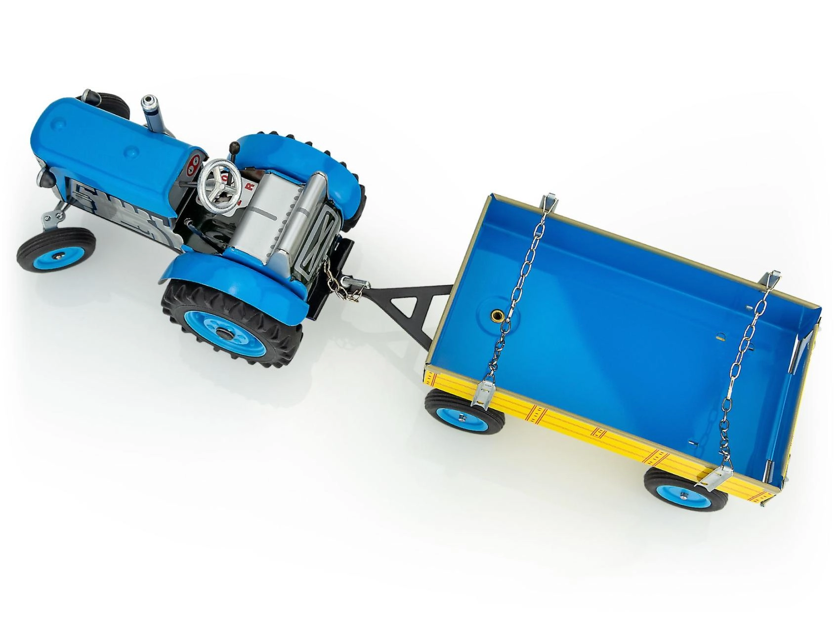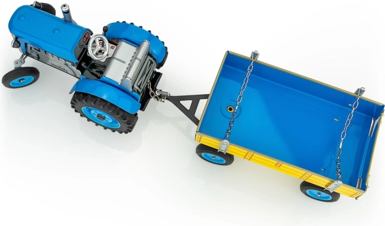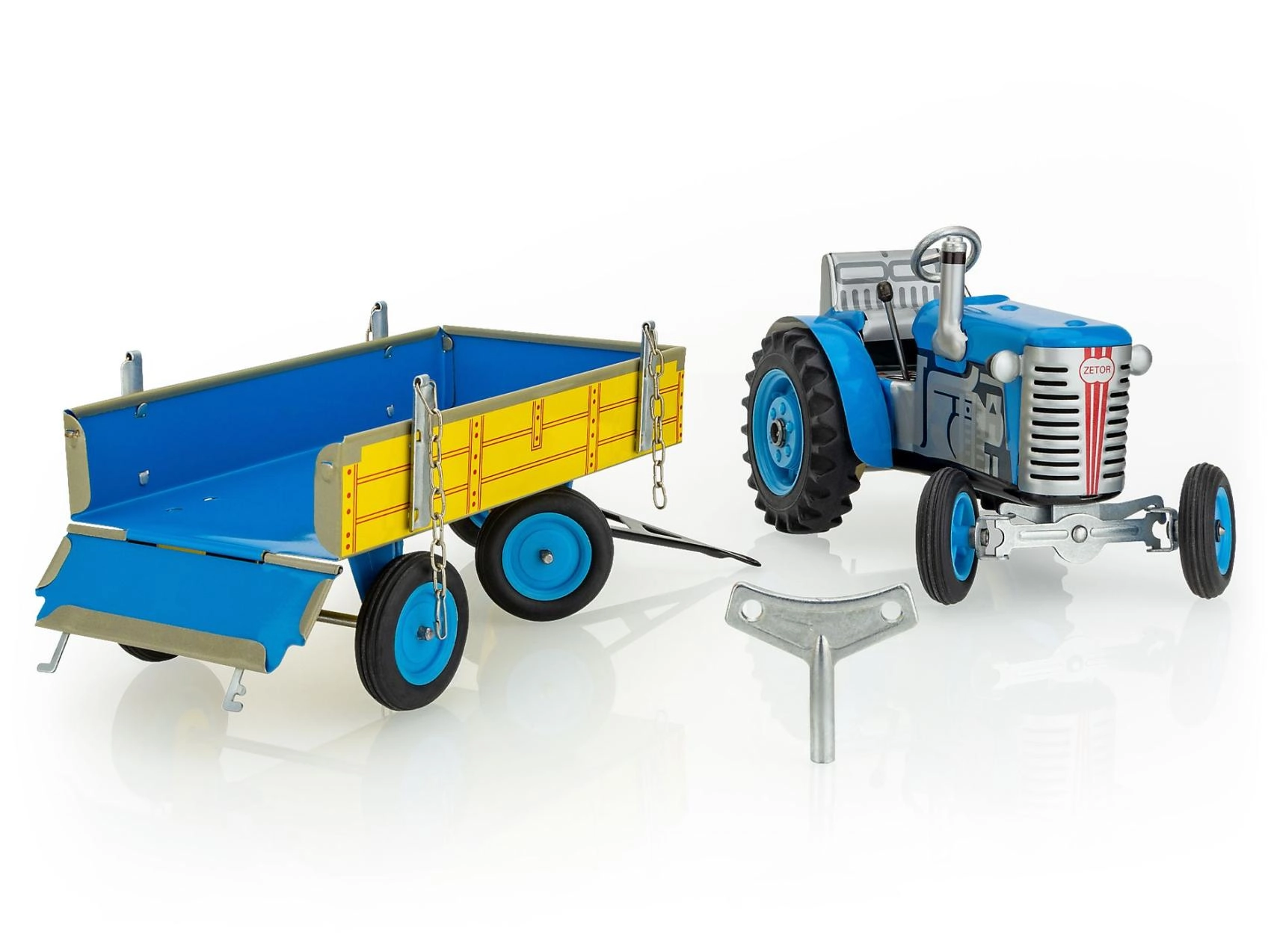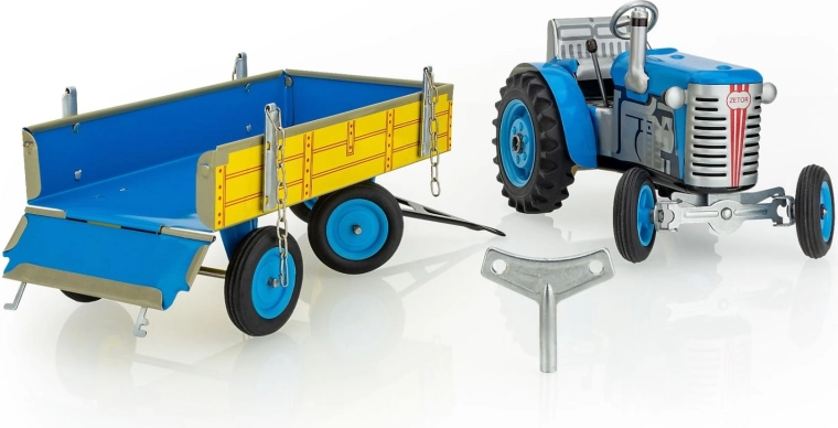 Kovový traktor ZETOR s valníkem na klíček potěší malé i velké fanoušky klasických hraček. Nabízí funkční převodovku se 3 rychlostmi vpřed, zpátečkou a neutrál, nechybí ani ruční brzda. Kvalitní kovové zpracování v měřítku 1:25 a délka 28 cm zaručují odolnost i realistický zážitek ze hry.