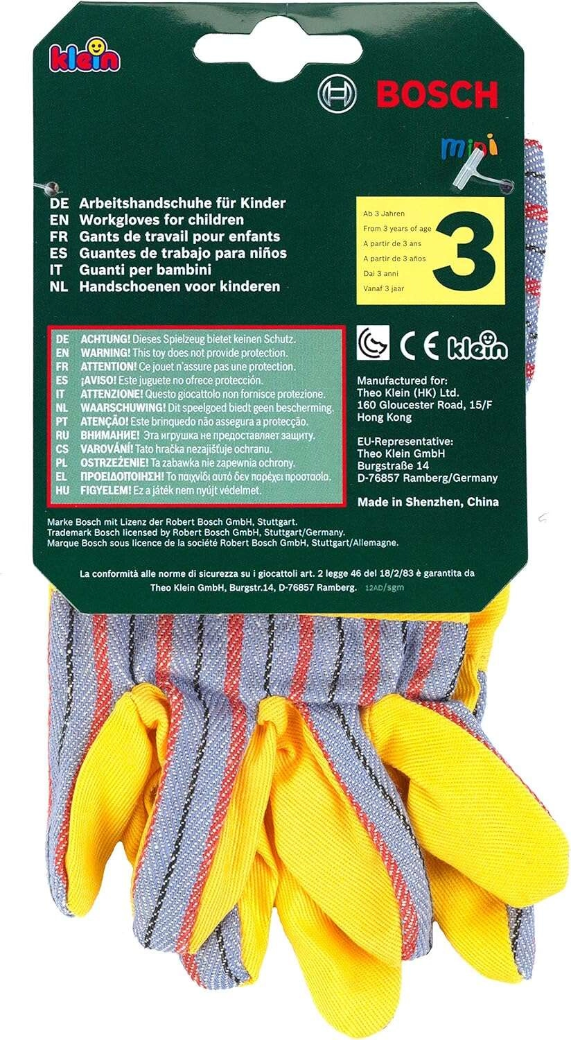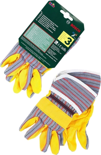Dětské pracovní rukavice BOSCH od značky Klein jsou skvělým doplňkem pro malé kutily. Věrně napodobují skutečné rukavice, mají žluté dlaně s šedými pruhovanými prvky, elastické manžety pro lepší držení a jsou ideální pro hraní na řemeslníky a zahradníky.