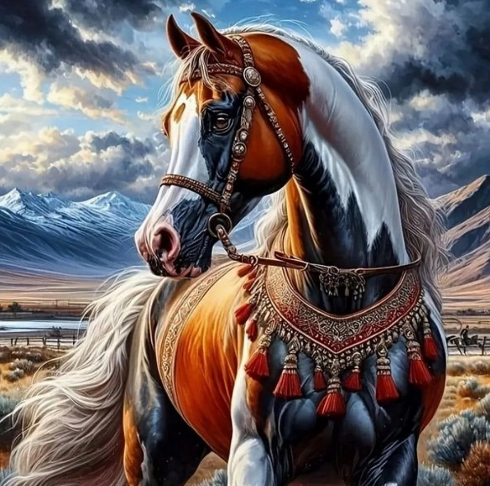 Objevte radost z tvoření s setem malování podle čísel, který vás krok za krokem dovede k hotovému obrazu majestátního koně v indiánském postroji. Součástí je předtištěné plátno 40 × 50 cm napnuté na rámu, akrylové barvy a sada štětců – vše připravené k okamžitému malování.