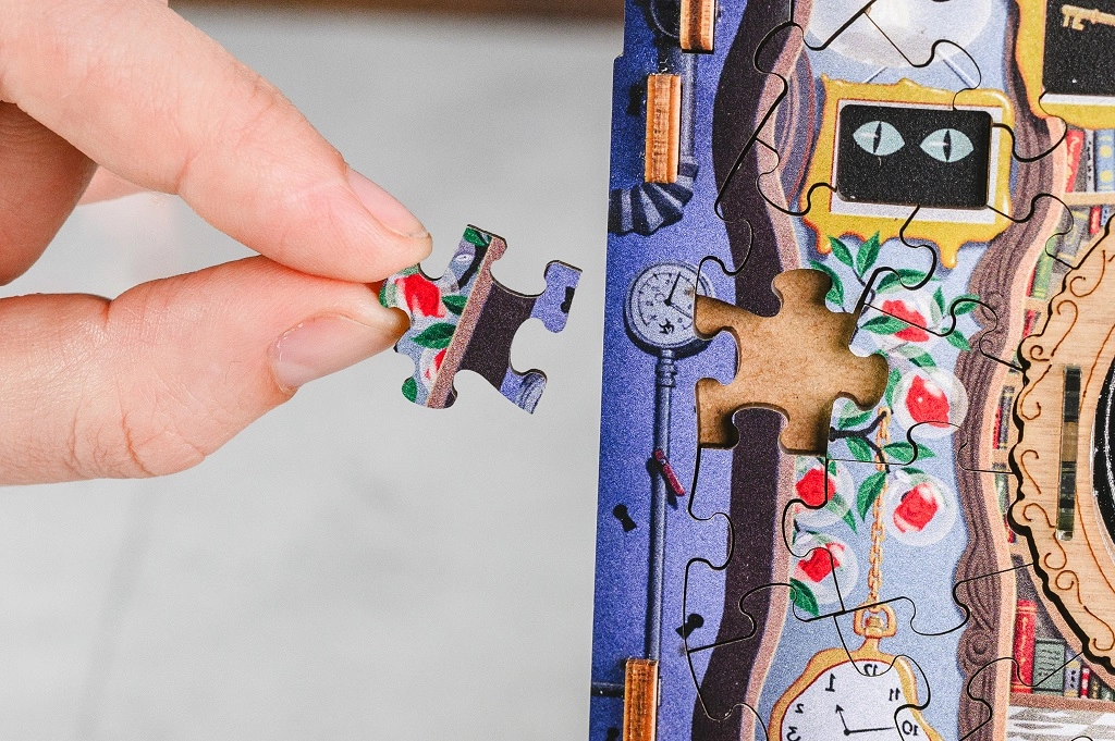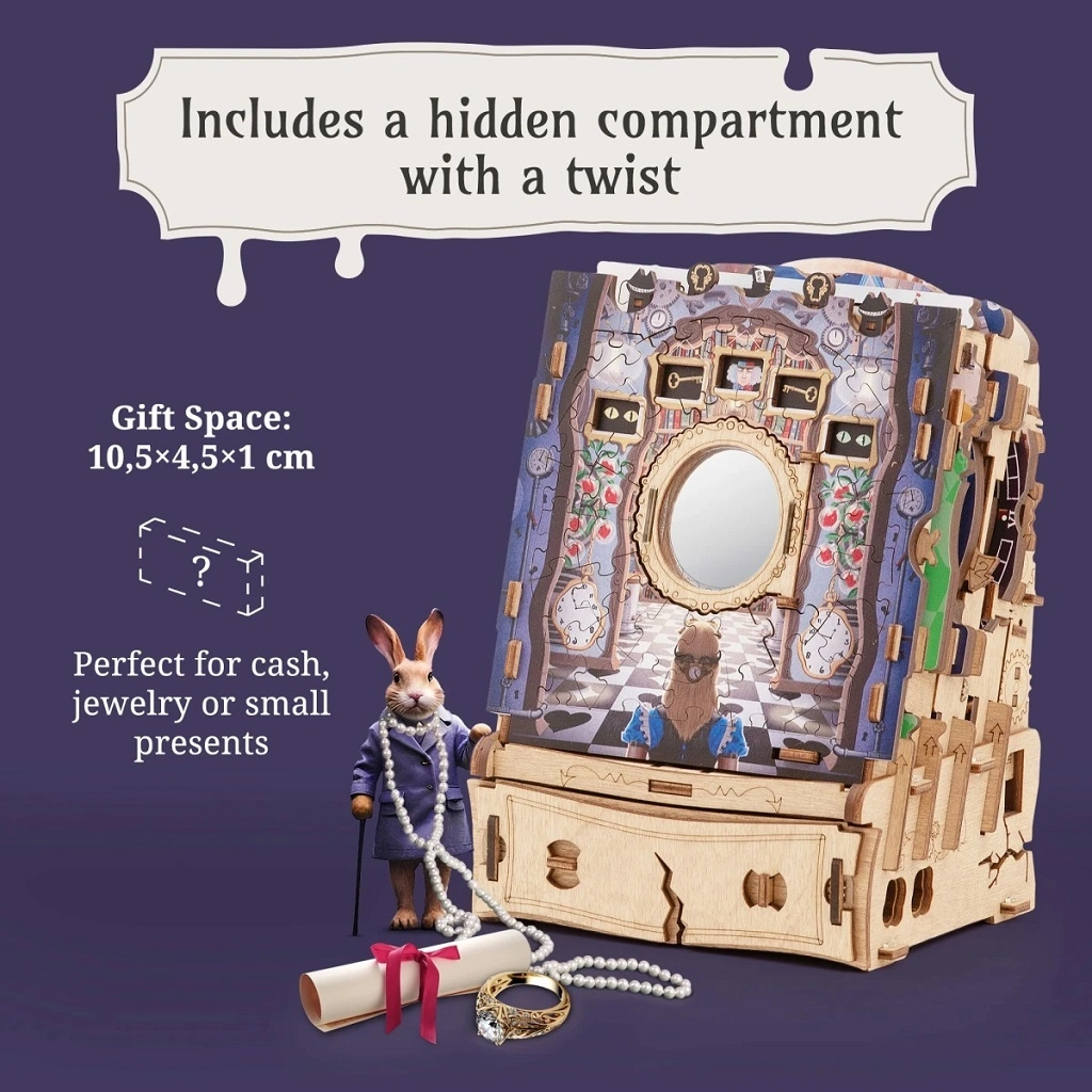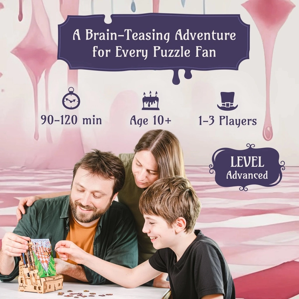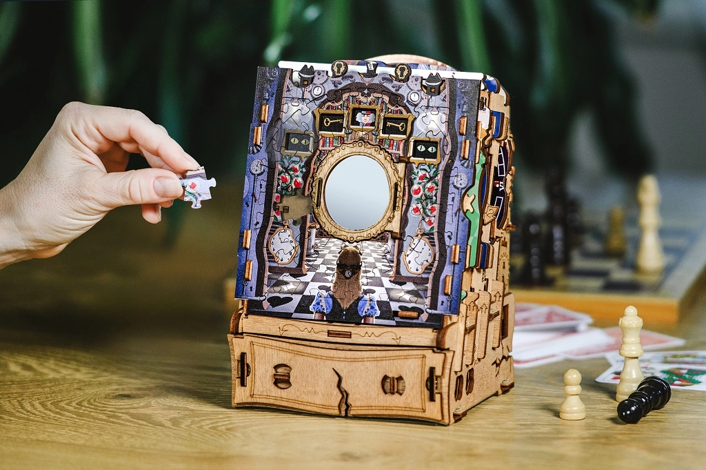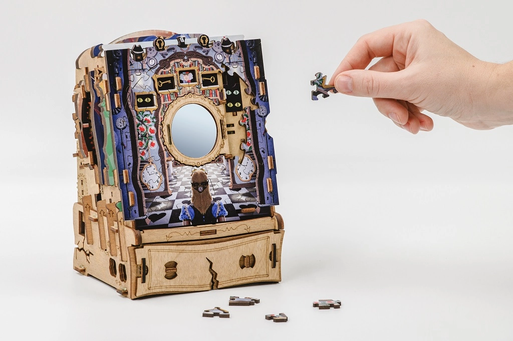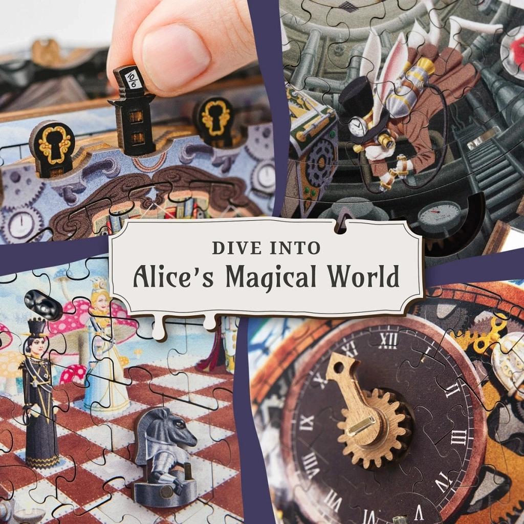 Ponořte se do fantazie s dřevěným hlavolamem iDventure, který spojuje klasické puzzle s chytrými mechanismy escape boxu. Během skládání krásně ilustrovaných scén inspirovaných ALENKOU V ŘÍŠI DIVŮ budete objevovat skryté nápovědy, řešit logické hádanky a krok za krokem odemykat tajemnou schránku se skrytou přihrádku.