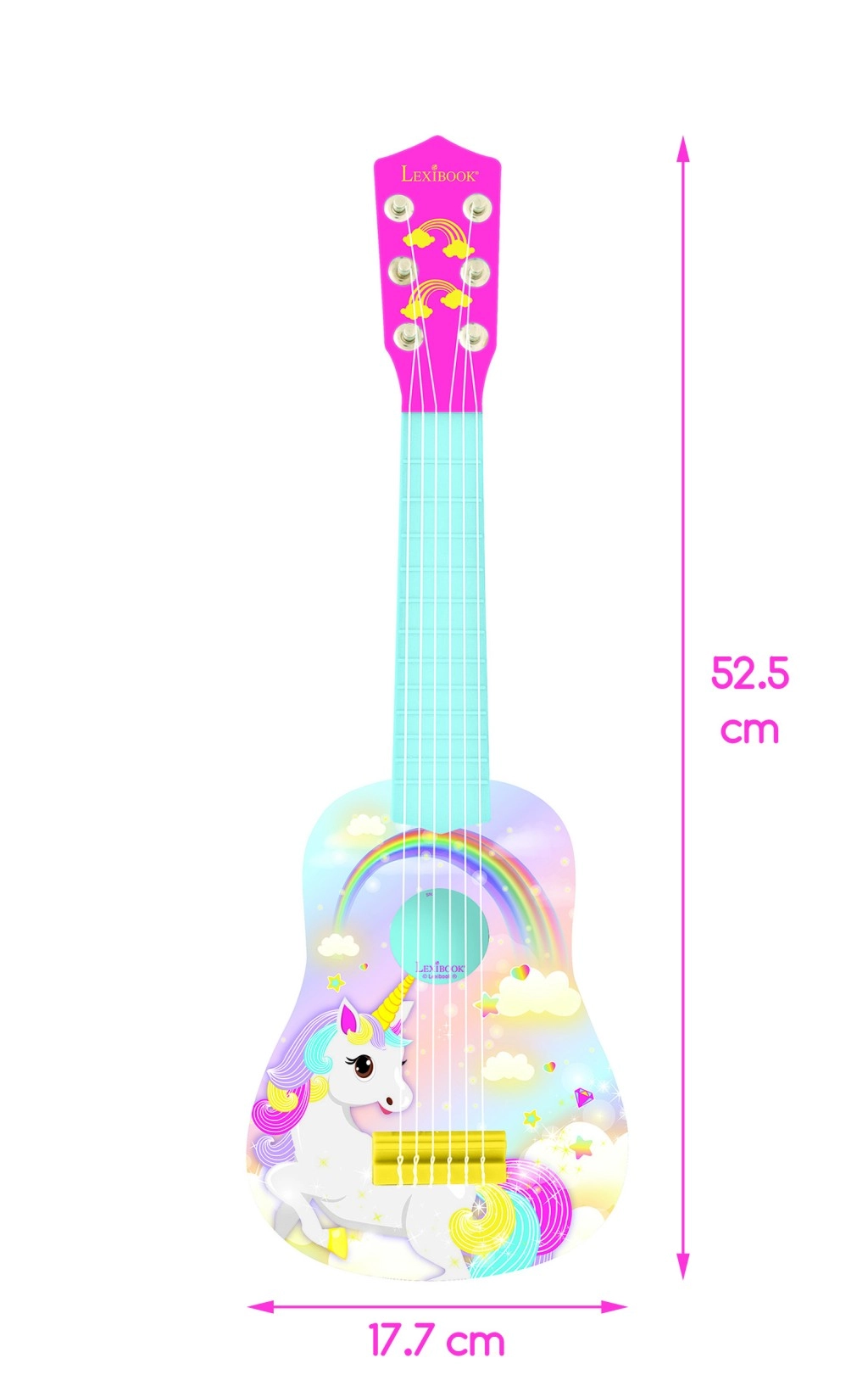 Objevte hravou dětskou kytaru Lexibook s kouzelným motivem jednorožce, ideální pro malé hudebníky od 3 let. Nabízí kompaktní délku 53 cm, 6 strun z příjemného materiálu a lehkou konstrukci pro snadné držení. Barevný design v pastelových tónech motivuje děti k hraní a rozvíjí jemnou motoriku i hudební sluch.