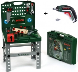 Tato praktická přenosná dílna BOSCH se snadno složí a uloží do kufříku, takže ji můžete vzít kamkoli s sebou. Najdete v ní vše potřebné pro malé opravy i velkou zábavu: pilu, kladivo, šroubovák, kleště, nastavitelný klíč, svěrák, hřebíky, šrouby a lišty.
