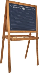 Tabule nabízí černou plochu na černé kresby křídou a magnetickou bílou plochu pro fixy a přichycení magnetků.