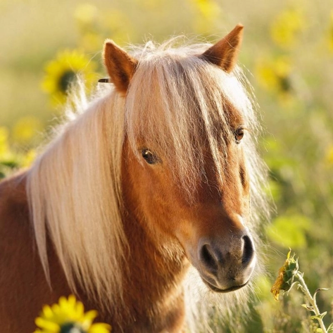Detailní zobrazení koní v rozkvetlých loukách a na pastvinách podporuje fantazii a vytváří příjemný, uklidňující zážitek ze skládání.