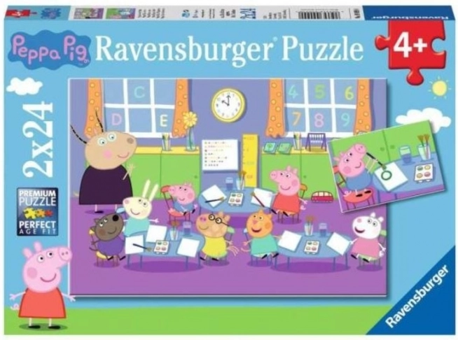 Toto dvoudílné puzzle od značky Ravensburger přináší dvě poutavé ilustrace s motivem PEPPA PIG a celé třídy. Díky preciznímu zpracování a odolným dílkům se puzzle skvěle skládá a vydrží i časté používání.