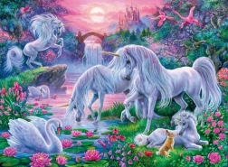 Ideální volba pro samostatné hraní i společné chvíle s rodinou. Motiv jednorožců na pozadí teplého západu slunce uchvátí všechny malé milovníky fantazie a zaručí hodiny zábavy.