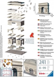 Postavte si ikonický pařížský symbol! 3D puzzle Vítězný oblouk od RAVENSBURGER nabízí 216 přesně lícujících dílků z pevného plastu, které do sebe zapadají bez lepení. Díky zakřiveným a ohebným dílkům a originálním doplňkům vytvoříte stabilní a působivý model, který ozdobí každou sbírku.