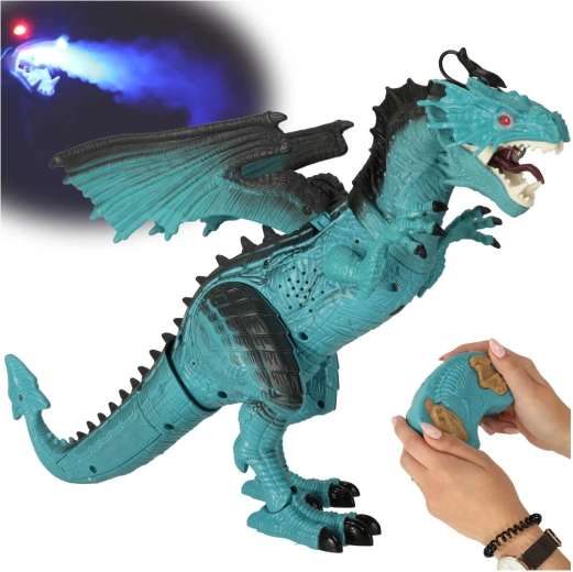 Tento dinosaurus Smok je skvělou volbou pro každé dítě, které miluje prehistorická zvířata a interaktivní hračky. S dálkovým ovládáním ve tvaru skamieliny můžete aktivovat různé funkce, včetně realistického ryku, svítících očí a úst, a pohybu hlavy a křídel.