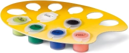 Praktická sada obsahuje plátno s předlohou, akrylové barvy v kelímcích, kvalitní štětec, kartonový stojánek na barvy i rámeček pro finální prezentaci.