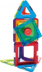 Stavebnice obsahuje celkem 6 magnetických čtverců, 8 trojúhelníků a 1 spinner, což poskytuje široký prostor pro experimentování. Tato stavebnice je nejen zábavná, ale také vzdělávací a rozvíjí dětské dovednosti jako prostorovou představivost, koordinaci, koncentraci a kreativitu.
