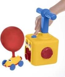 Napumpujte balónek, stiskněte spoušť a sledujte, jak autíčko vyrazí vpřed. Děti názorně pochopí princip tlaku vzduchu a reakce při každém startu.