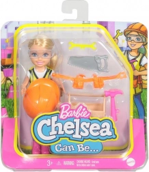 Každá panenka Chelsea ve stavitelské roli je vybavena bezpečnostní vestou, helmou a nástroji jako pilka nebo klíč.