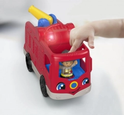 Vydejte se na záchrannou misi s hasičským autem LITTLE PEOPLE! Dvě figurky hasičů přinášejí dětem spoustu interaktivní zábavy – po stisknutí sedadla se ozvou realistické zvuky, veselé písničky a hlášky o spolupráci a pomoci. Otočením kotouče aktivujete blikající světla a roztočíte hasicí hadici, což podporuje fantazii a učení příčiny a následku.
