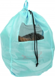 Turkusový pytlík se síťovým okénkem umožňuje snadné přenášení a skladování lana po hře.