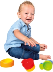 Odolné plastové díly jsou ideální pro hraní ve vodě i na pískovišti – skvělé pro přelévání, sítkování a tvorbu báboviček. Díky univerzálnímu využití rozvíjí hračka motoriku, trpělivost a základní předmatematické dovednosti.