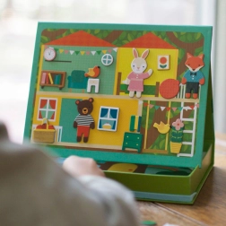 Magnetické divadlo zvířátkový dům Petit Collage přináší dětem nekonečné možnosti kombinací a scén – od útulného zvířecího domečku až po roztomilý piknik v parku. Díky zarážkám lze magnetickou scénu snadno postavit, takže se z krabice rázem stává praktické divadélko.