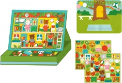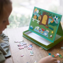 Vytvořte si vlastní příběhy se zábavným magnetickým setem, který nabízí dvě pozadí a více než 72 magnetických dílků. Přenosná krabice ve stylu stojanu s pevnou konstrukcí a elastickou gumičkou pro rychlý úklid zaručí snadné používání doma i na cestách. Hračka podporuje kreativitu, jemnou motoriku a otevřenou hru, je vyrobena z recyklovaných materiálů potištěných rostlinnými inkousty a splňuje všechny bezpečnostní normy.