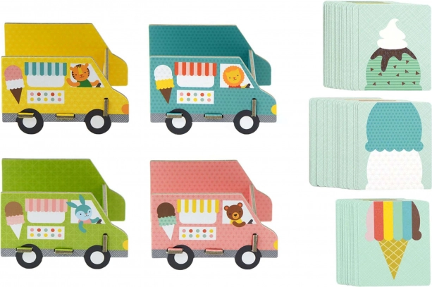 Mlsouni, spojte se! Chytrá a zábavná karetní hra, ve které skládáte zmrzlinové kornouty, sbíráte kopečky a přidáváte posypku. Obsahuje 52 ilustrovaných karet a 4 zmrzlinová auta, je ideální pro 2–4 hráče, trvá přibližně 10 minut a je vyrobena z recyklovaných materiálů s rostlinnými inkousty. Skvělá volba pro děti od 4 do 8 let a splňuje všechny bezpečnostní normy.