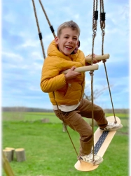 Robustní dřevěná madla na lanech snadno posunete do ideální výšky. Poskytují oporu při naskakování i houpání ve stoje.