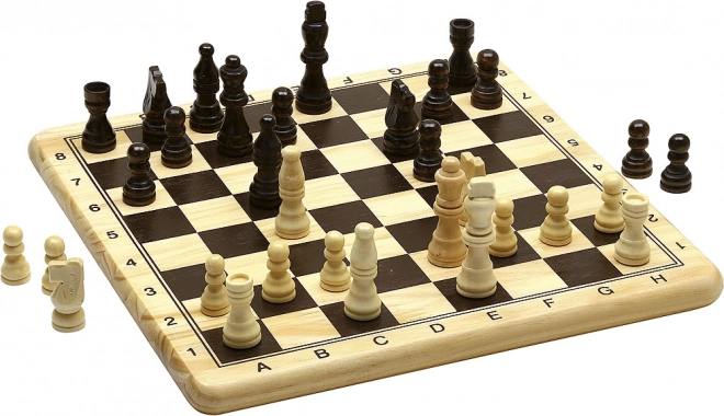 Dřevěné šachy a dáma Jeujura