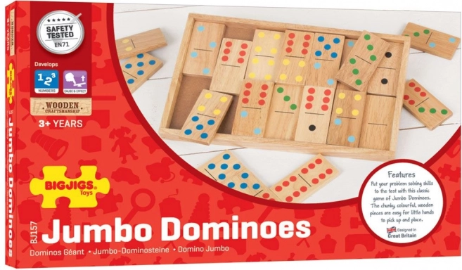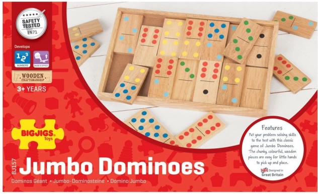 Jumbo dřevěné domino je perfektně dimenzováno pro malé děti, které si snadno poradí se zvedáním a umisťováním dílků. Hlavní přednosti této hry zahrnují: