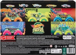 Otevřete krabici a hned můžete závodit, bourat a předvádět triky. Tato bohatá sada přináší 10 vozidel v měřítku 1:64 – pět robustních monster trucků a pět rychlých Hot Wheels autíček. Díky svítícím prvkům vyniknou vaše kaskadérské kousky i za šera nebo ve tmě.