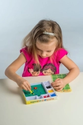 Tato mozaika je skvělou volbou pro první tvoření. Děti pomocí pinzety vkládají barevné kuličky do podložky a vytvářejí jednoduché i nápadité motivy. Aktivita podporuje trpělivost, koordinaci oko–ruka a rozvoj jemné motoriky.