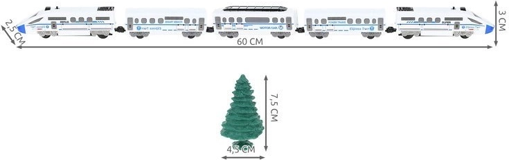 - Rozměry lokomotivy s vozy (délka / šířka / výška): 60 / 2,5 / 3 cm